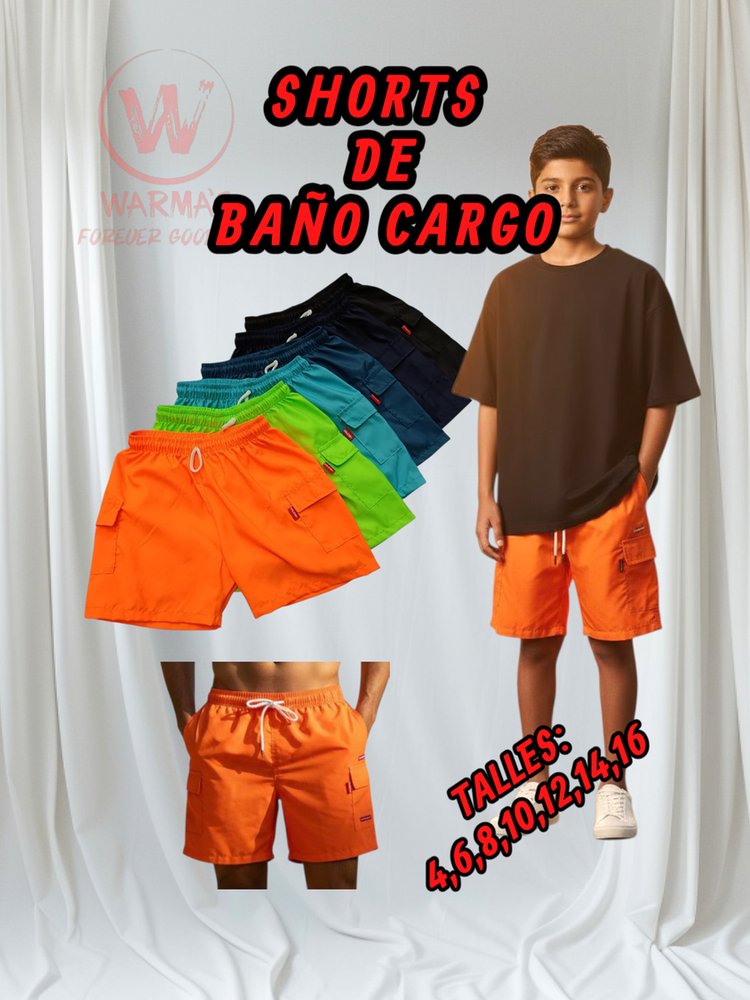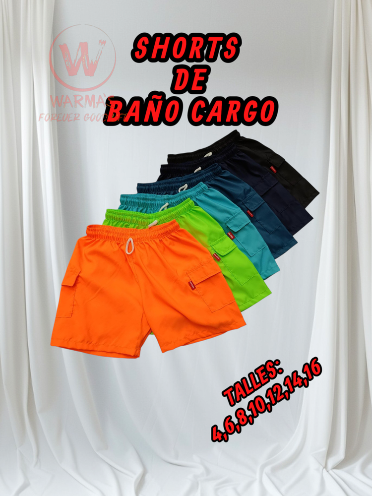 SHORTS CARGO DE NIÑOS TALLES DEL 4 AL 16 COLORES VARIADOS TELA MICROFIBRA CON PROTECTOR UV
